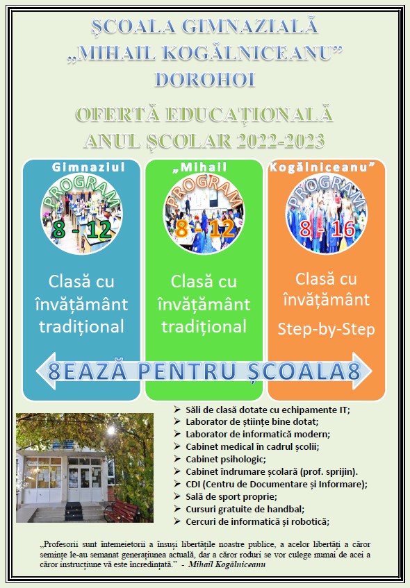 © Copyright 2017 ȘCOALA GIMNAZIALĂ „MIHAIL KOGĂLNICEANU” DOROHOI.
